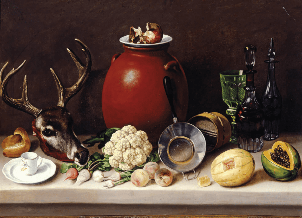 La exposición finaliza con el núcleo temático “Las alacenas y la cultura culinaria poblana”, en la que se podrán observar algunos de los célebres bodegones de José Agustín Arrieta, mismos que tuvieron una enorme demanda por la burguesía poblana del siglo XIX.