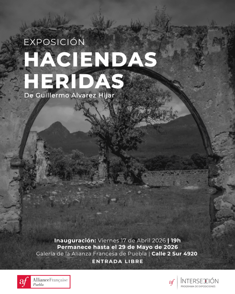 La Alianza Francesa de Puebla (2 Sur 4920, San Baltazar Campeche, Puebla) abrirá sus puertas el próximo viernes 17 de abril a las 19 horas para la inauguración de “Haciendas heridas”, exposición del fotógrafo Guillermo Álvarez Híjar.