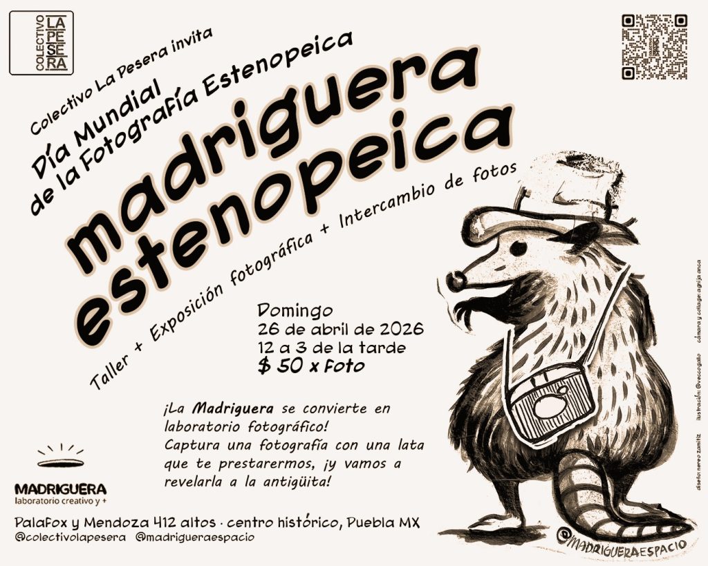 El encuentro se realizará el próximo domingo 26 de abril, de 12 a 15 horas, en Madriguera Espacio (Juan de Palafox y Mendoza 14, Centro, Puebla), con una dinámica abierta a todas las edades y una cooperación de 50 pesos por fotografía.